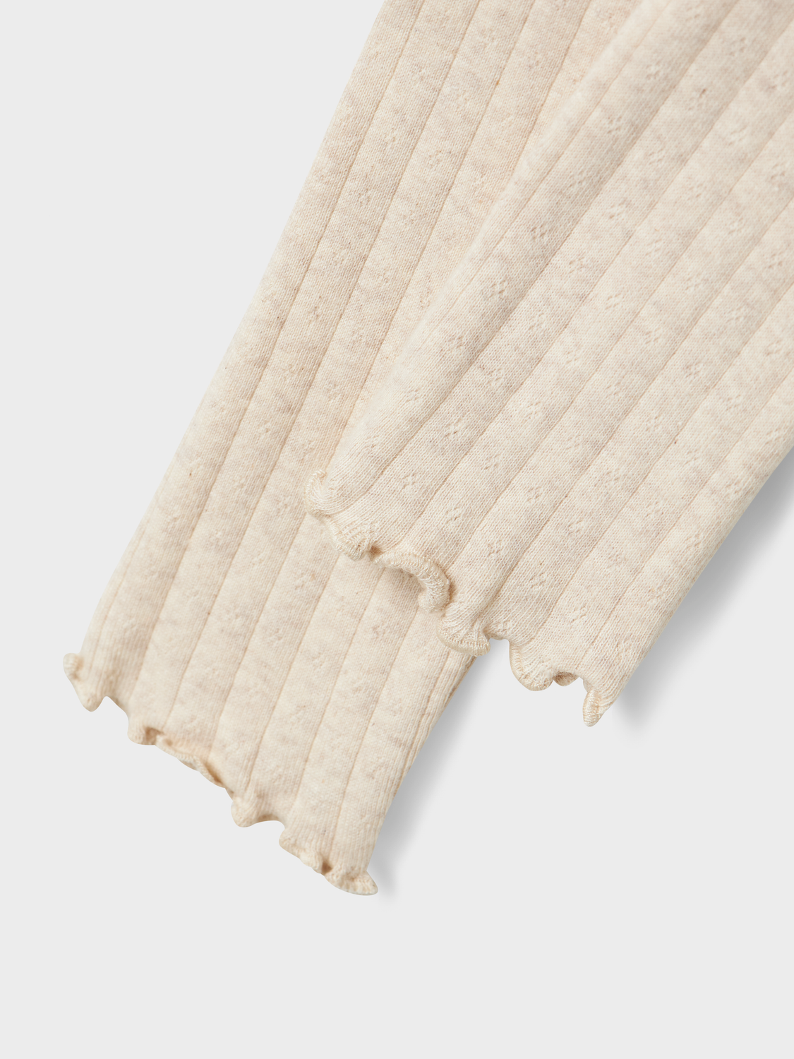 NMFLALLA XSL LEGGING er et stilrent og komfortabelt valg for hverdagsbruk. Laget av økologisk bomull, gir disse leggingsene en myk følelse mot huden, samtidig som de har en smidig passform takket være elastaninnholdet. Den delikate fargen Peyote Melange gjør dem lett å kombinere med ulike antrekk.