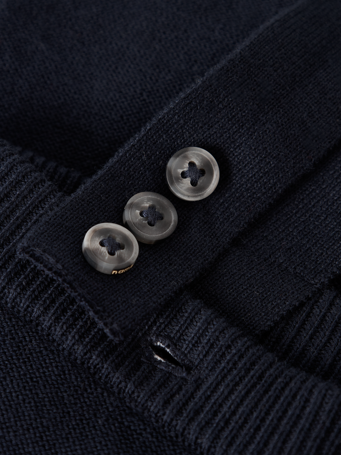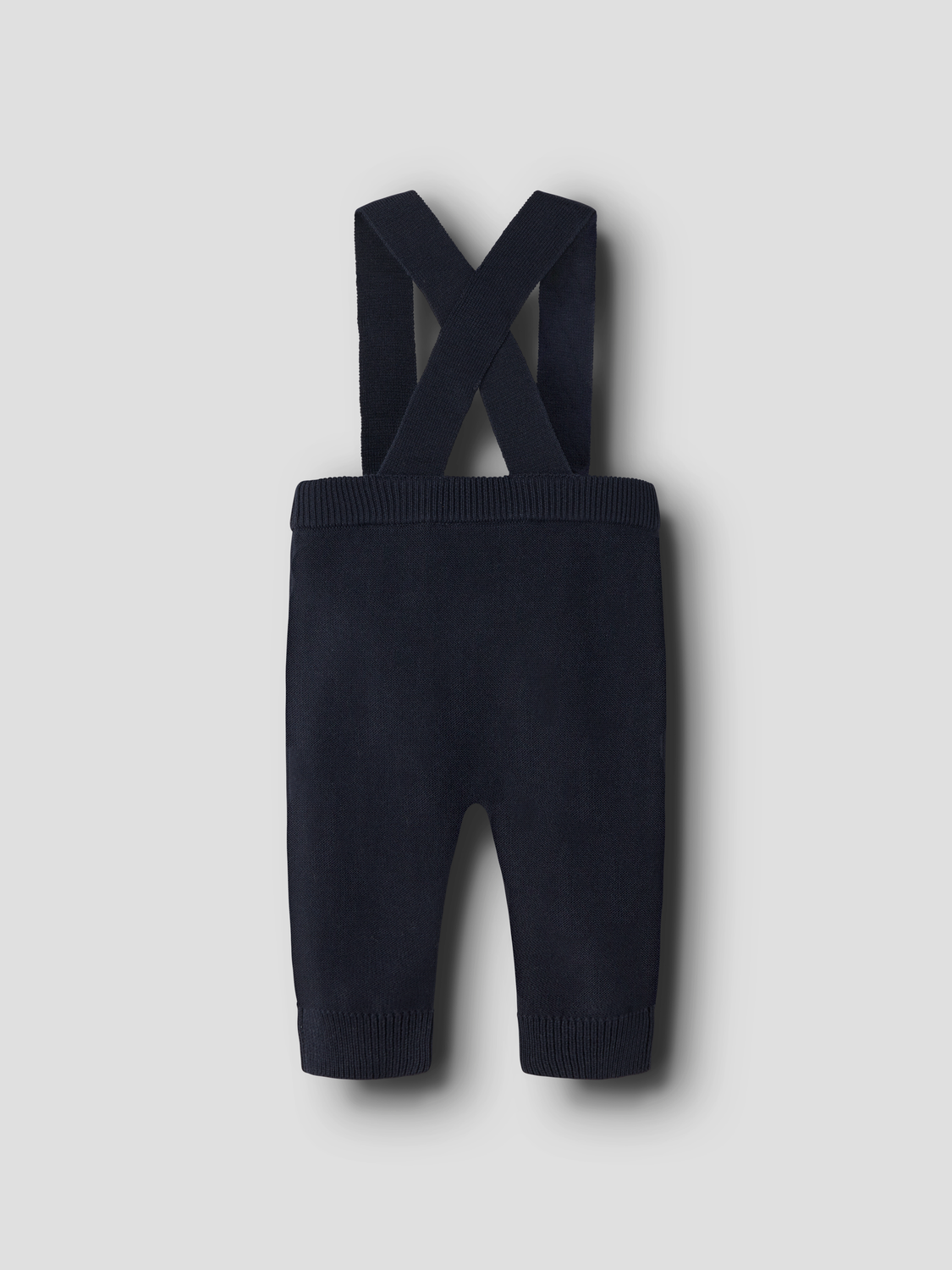 Skap en stilig og komfortabel look for barnet ditt med NBMROMAN KNIT OVERALL. Disse bukser med hängslen er laget av økologisk bomull, som gir en myk og behagelig følelse. Den mørkeblå fargen gjør dem lett å kombinere med ulike antrekk.