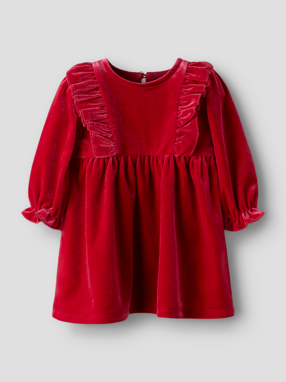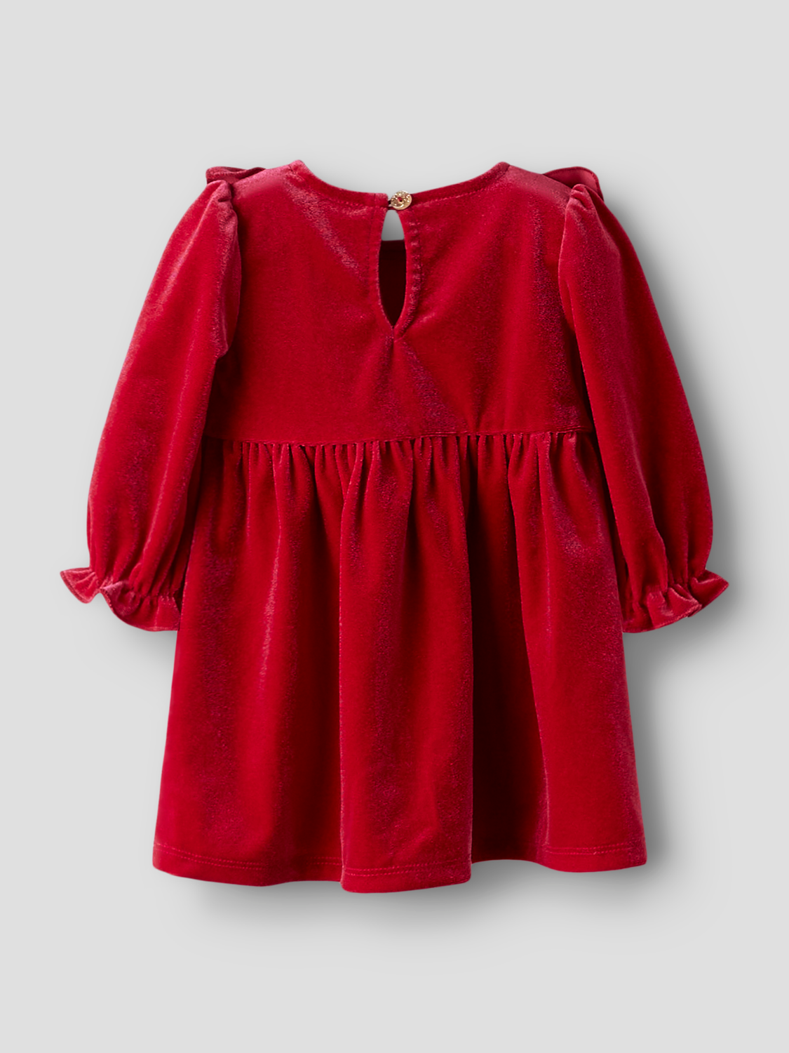 Gi barnet ditt en festlig stil med NBFRINNE LS VEL DRESS i en livlig jester rød farge. Denne klänningen er laget av myk velour, som gir en elegant glans og en behagelig følelse. Perfekt for spesielle anledninger, vil denne kjolen garantert spre glede og lykke.