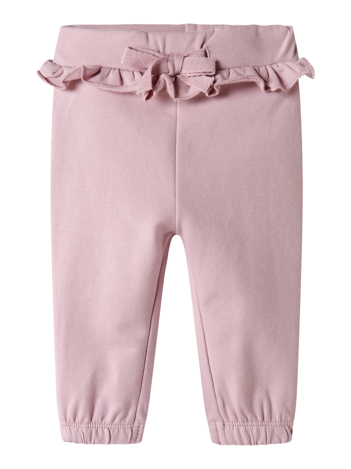 NBFROWANE SWEAT PANT BRU er perfekte for en avslappet stil med en myk og behagelig følelse. Laget av økologisk bomull, disse sweatbuksene har en justerbar midje og elastiske detaljer som gir en komfortabel passform. Den delikate fargen Keepsake Lilac gir et friskt preg til garderoben din.