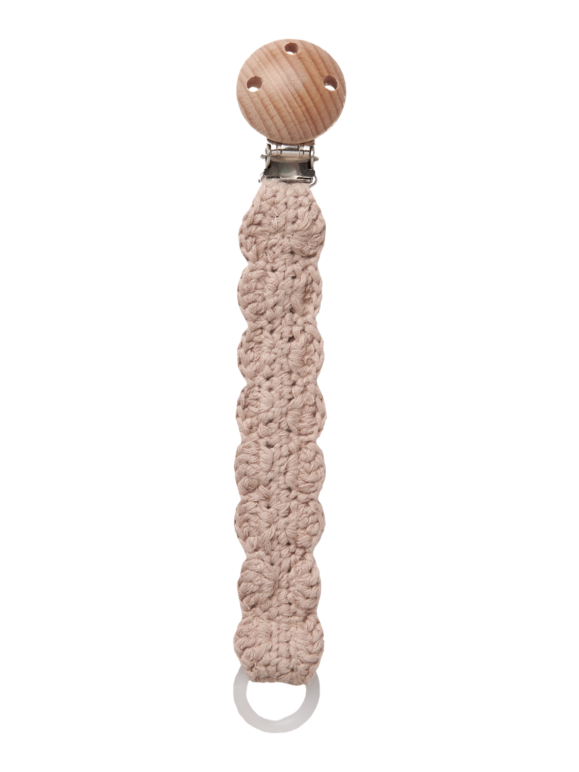 NBNLIMO smokksnor i Oxford Tan har et delikat strikkelignende design med unike mønstre som gir et elegant preg. Laget av 100% økologisk bomull, er denne smokksnoren både trygg og komfortabel for barnet ditt.