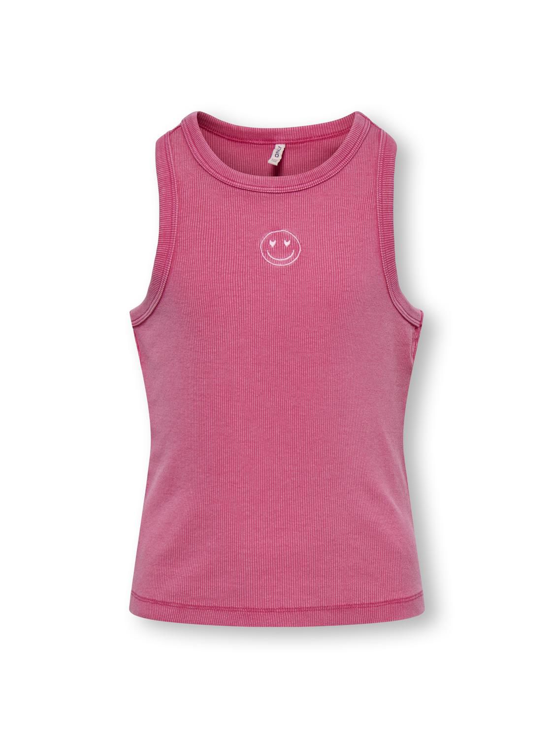 KOGJILLY EMB WASHED TANK TOP JRS er en stilren og komfortabel tank top i en livlig magenta farge, perfekt for varme dager. Den er laget av myk bomull med en smule elastan for ekstra bevegelighet, noe som gjør den ideell for hverdagsbruk.