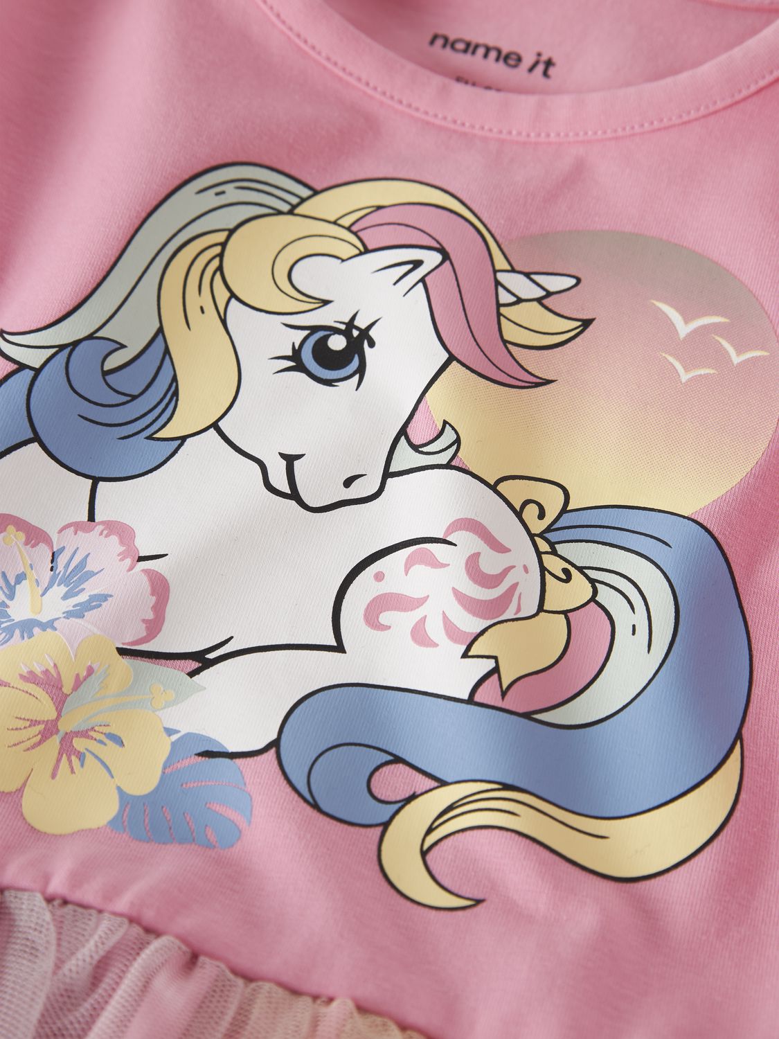 Gi barnets garderobe et friskt preg med denne vakre kjolen i lyserød, inspirert av vennene fra My Little Pony. Kjolen har en O-hals og korte ermer, perfekt for varme dager. Rysjedetaljene og det myke gummitrykket gir en leken og komfortabel følelse. Denne kjolen er ideell for spesielle anledninger og festligheter.