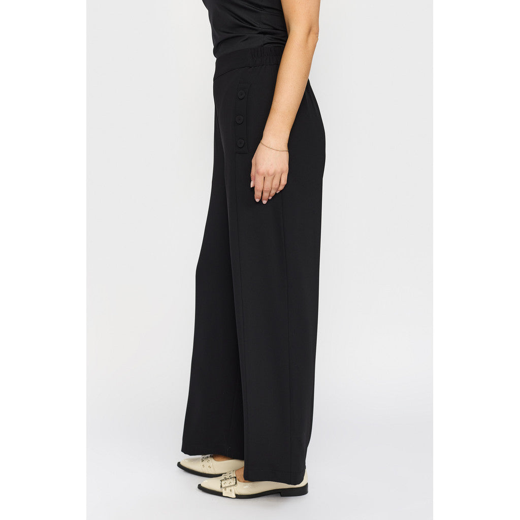 Beautiful pants with pockets and button details. The pants have a wide leg and an elastic waistband.