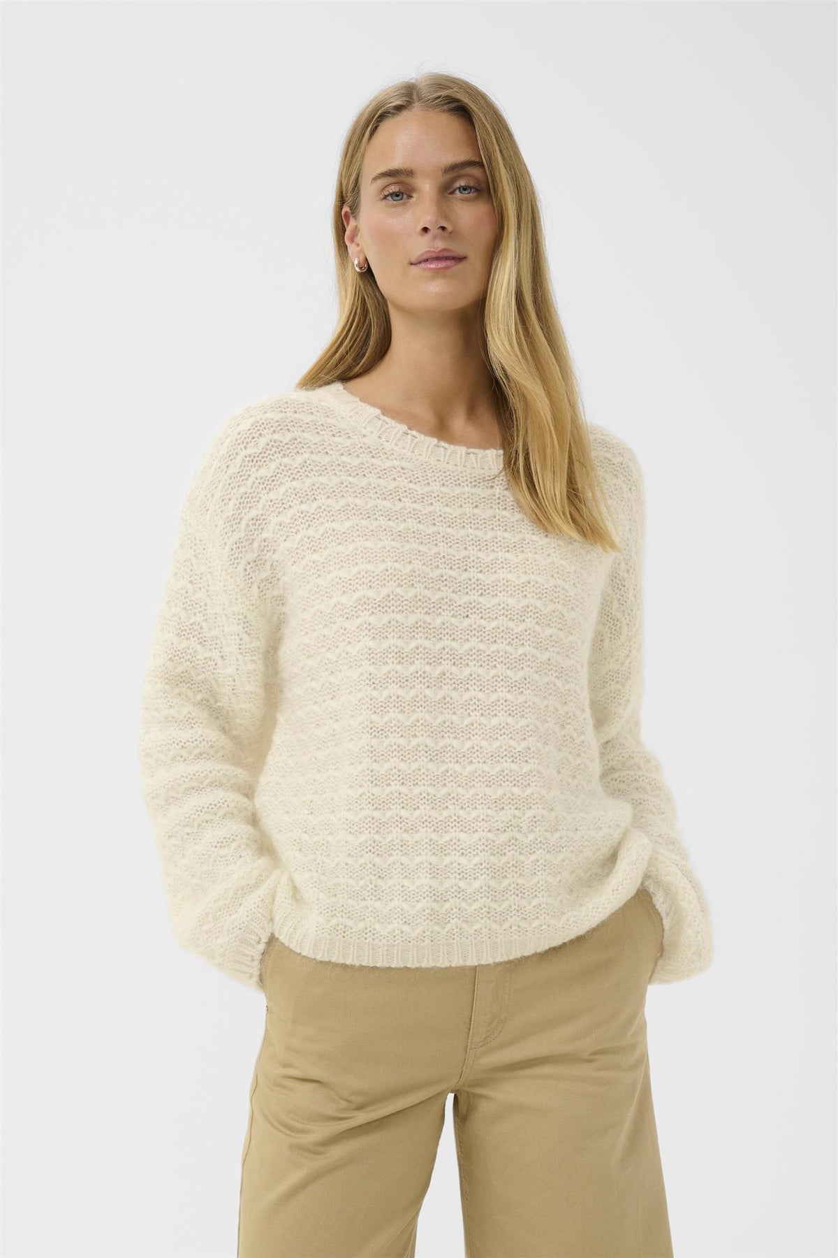 Den stilige ZoeyPW PU genseren i Whisper White kombinerer komfort og eleganse. Laget av en nøye utvalgt blanding av materialer, gir denne genseren en myk og behagelig følelse, perfekt for en avslappet dag.
