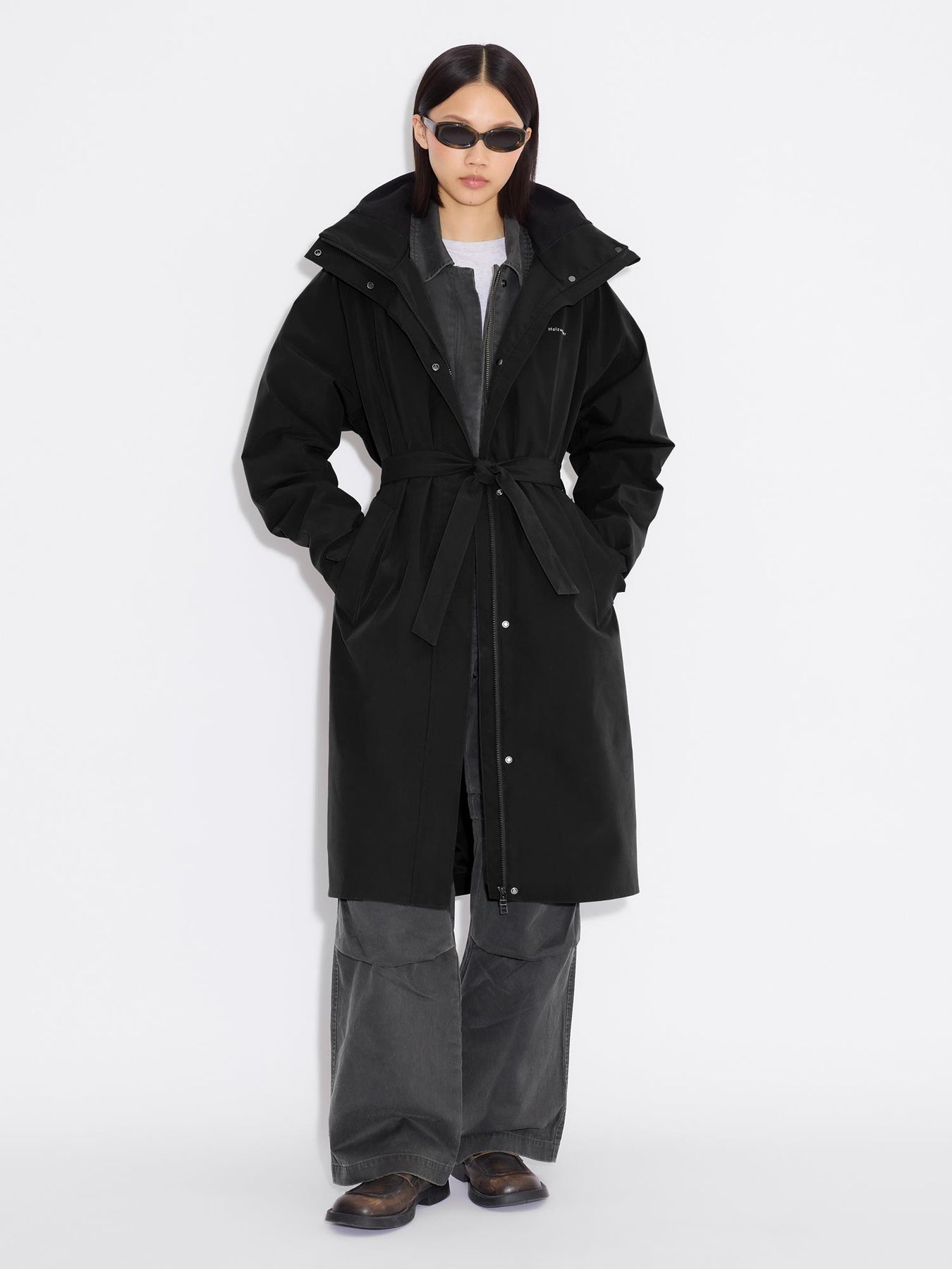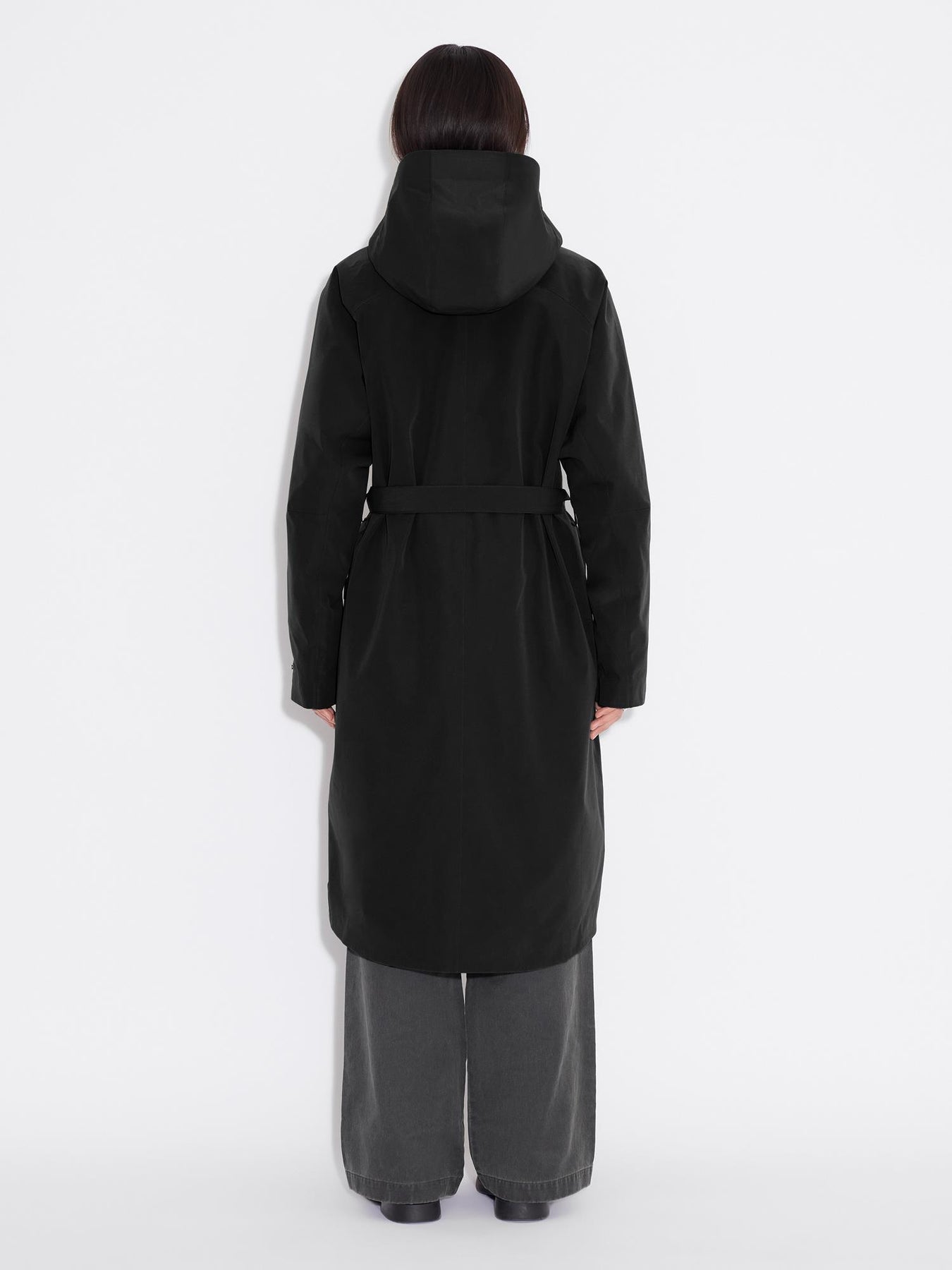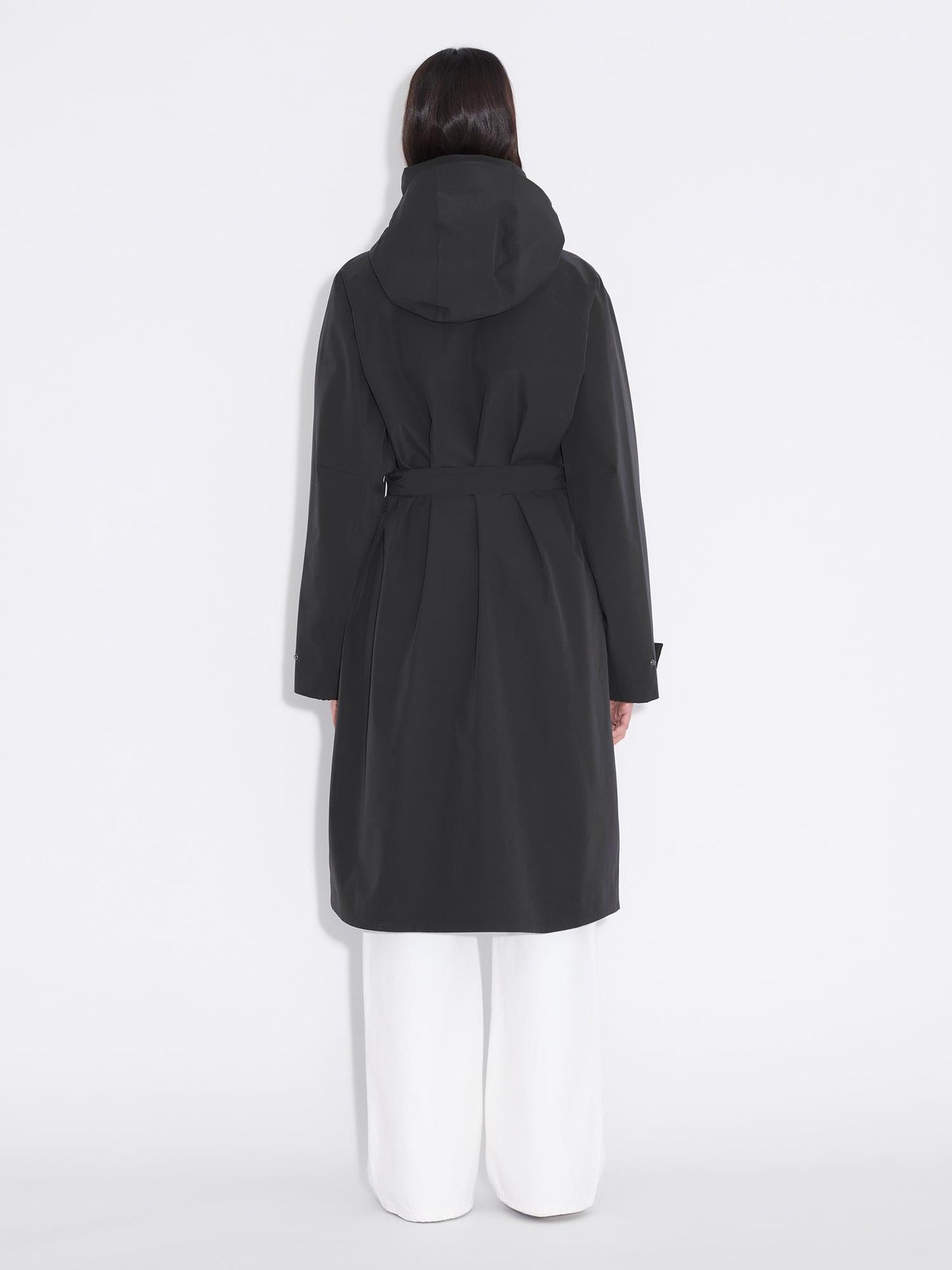 Flow Belt Jacket 25-03 er en allsidig regnjakke som er perfekt for skiftende værforhold. Laget av et teknisk stoff med 10k/10k vanntett kapasitet og pusteevne, har den en oppbevaringsbar hette, glidelåslommer, toveis glidelås foran og belte i midjen for en justerbar silhuett.