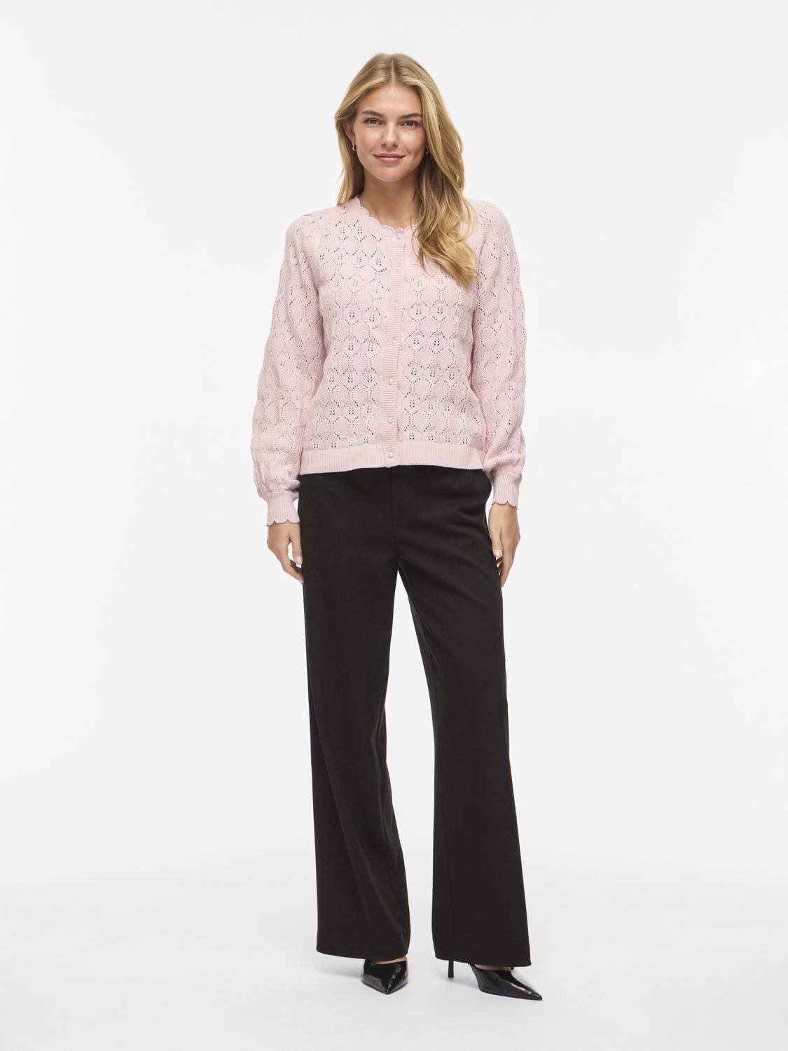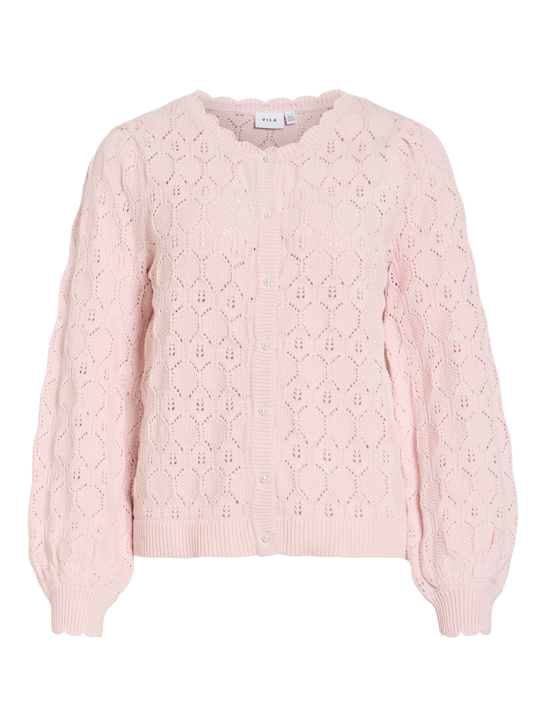 VILOWEN L/S O-NECK KNIT CARDIGAN i fargen Cherry Blossom er en elegant og lett cardigan laget av økologisk bomull. Den delikate pointelle-detaljen gir et luftig preg, perfekt for vår- og sommermånedene.