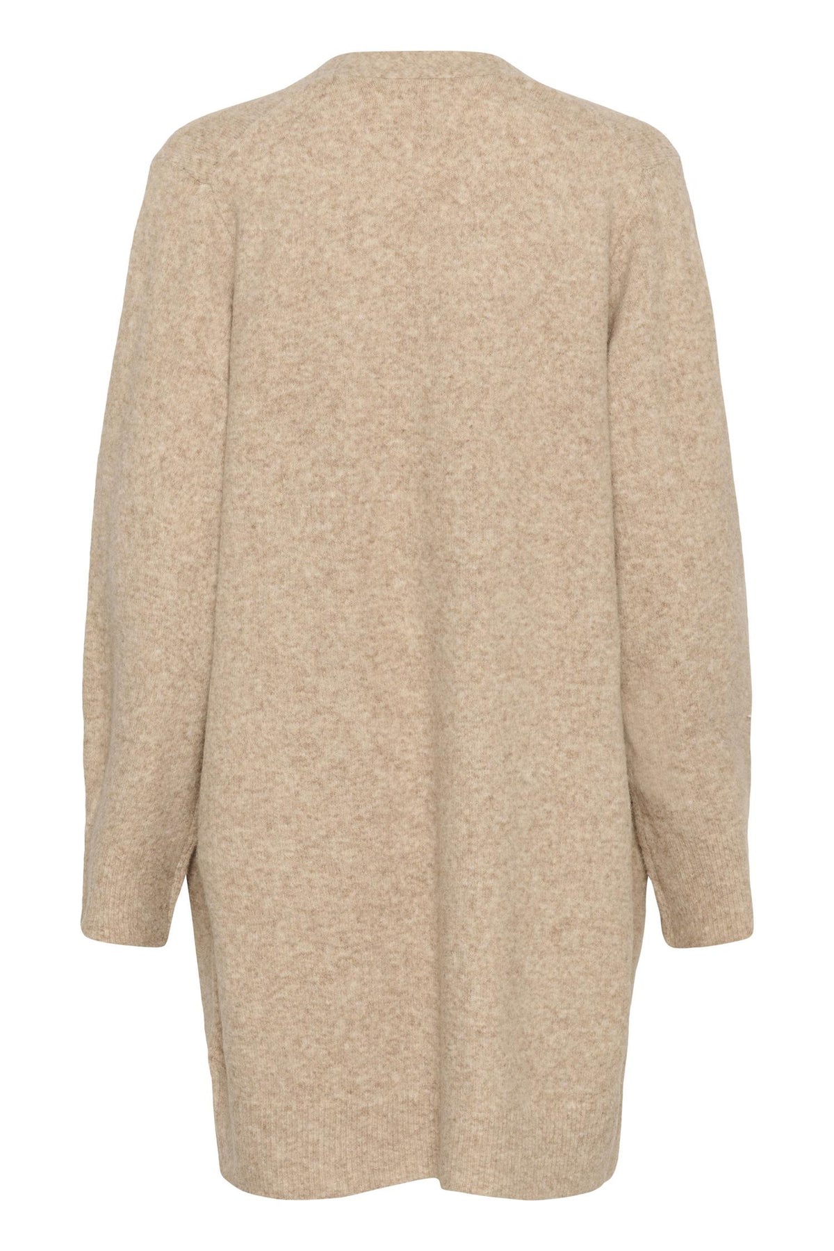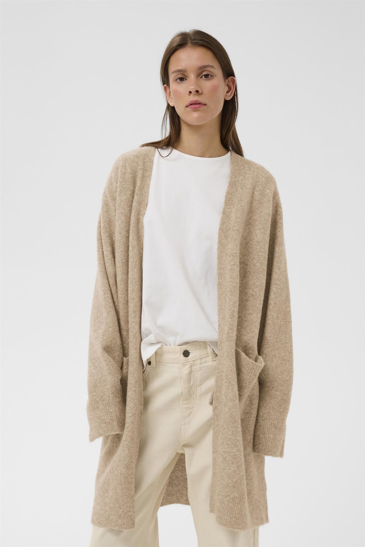 GuniIW Cardigan i fargen Cornstalk Melange er et stilrent og komfortabelt plagg som passer perfekt til hverdagsbruk. Den myke strikkede kvaliteten gir en behagelig følelse mot huden, samtidig som den tilfører et moderne preg til antrekket ditt.