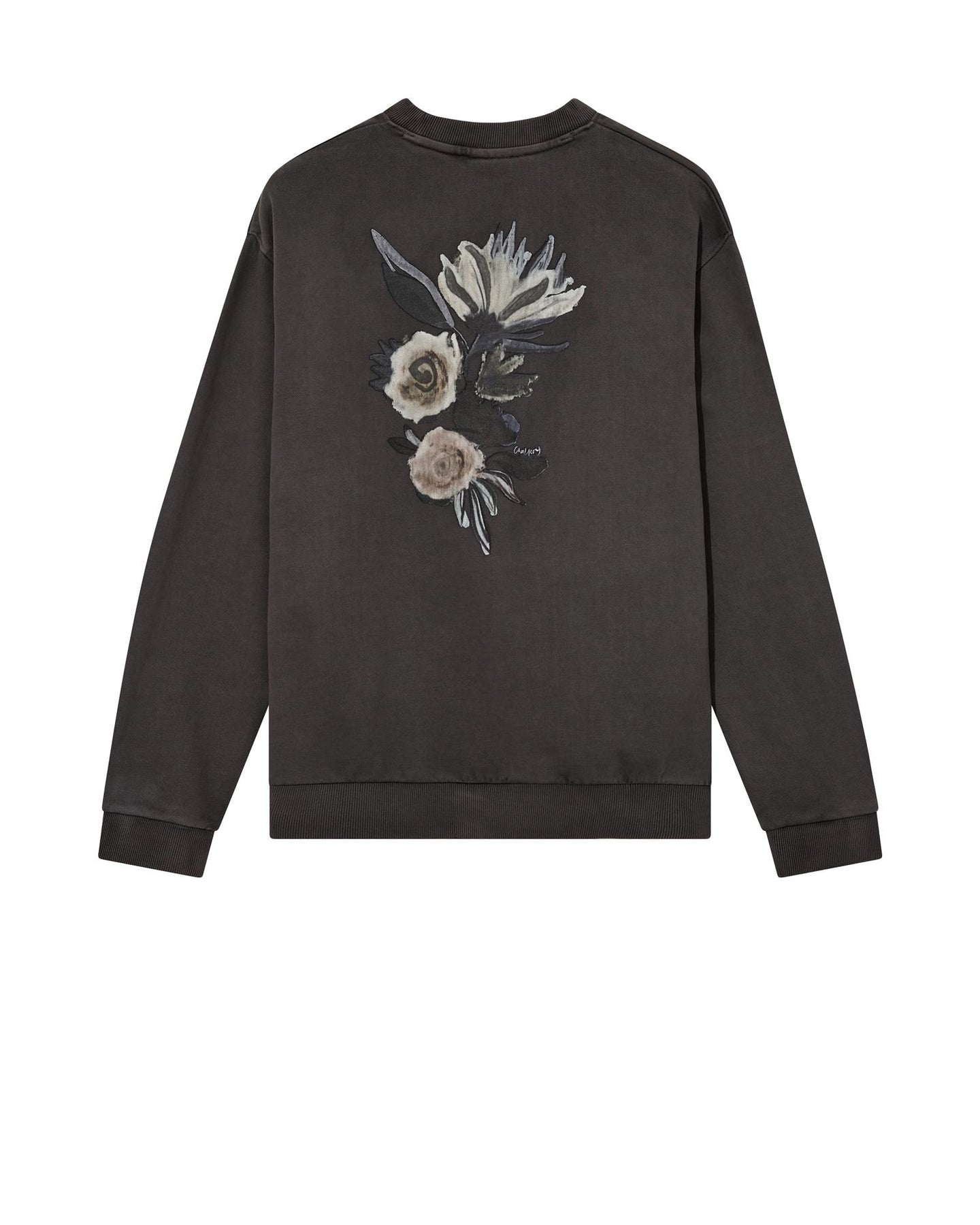 This sweatshirt is elevated with a bold back print, hand-drawn for a unique and personal touch. Designed with slightly dropped shoulders and ribbed details, it brings a relaxed yet refined silhouette. Finished with a subtle tone-in-tone logo at the chest, it’s an effortless statement piece for everyday wear.