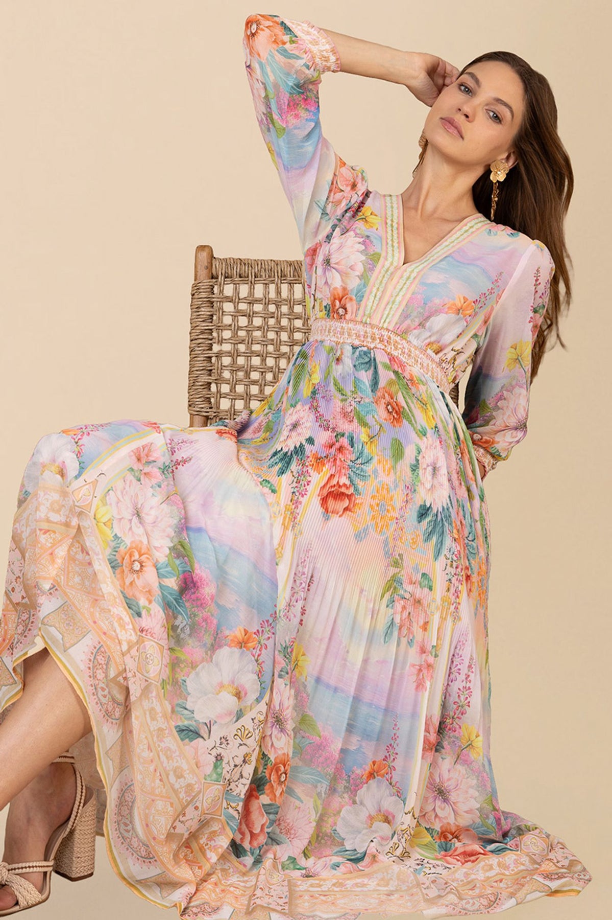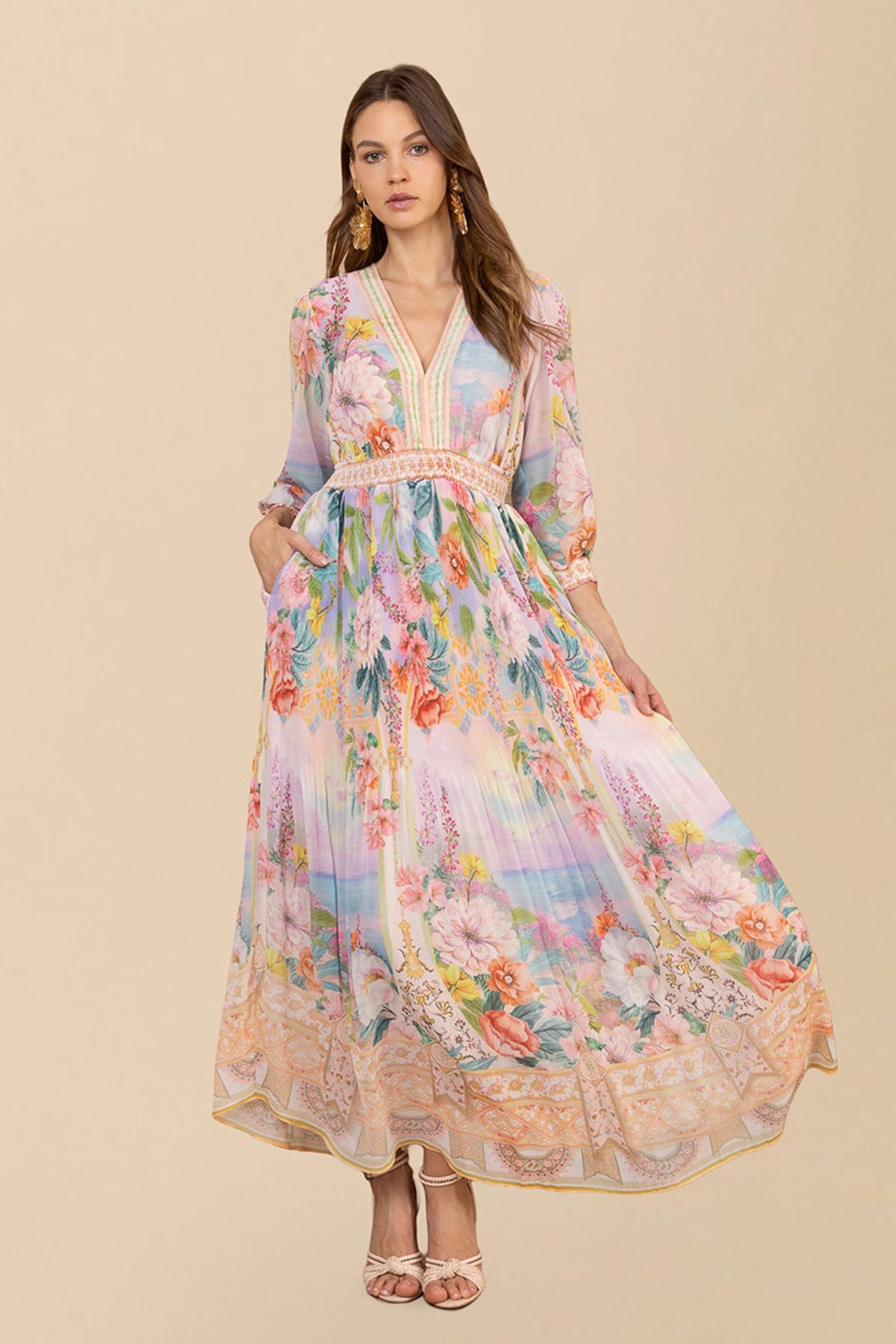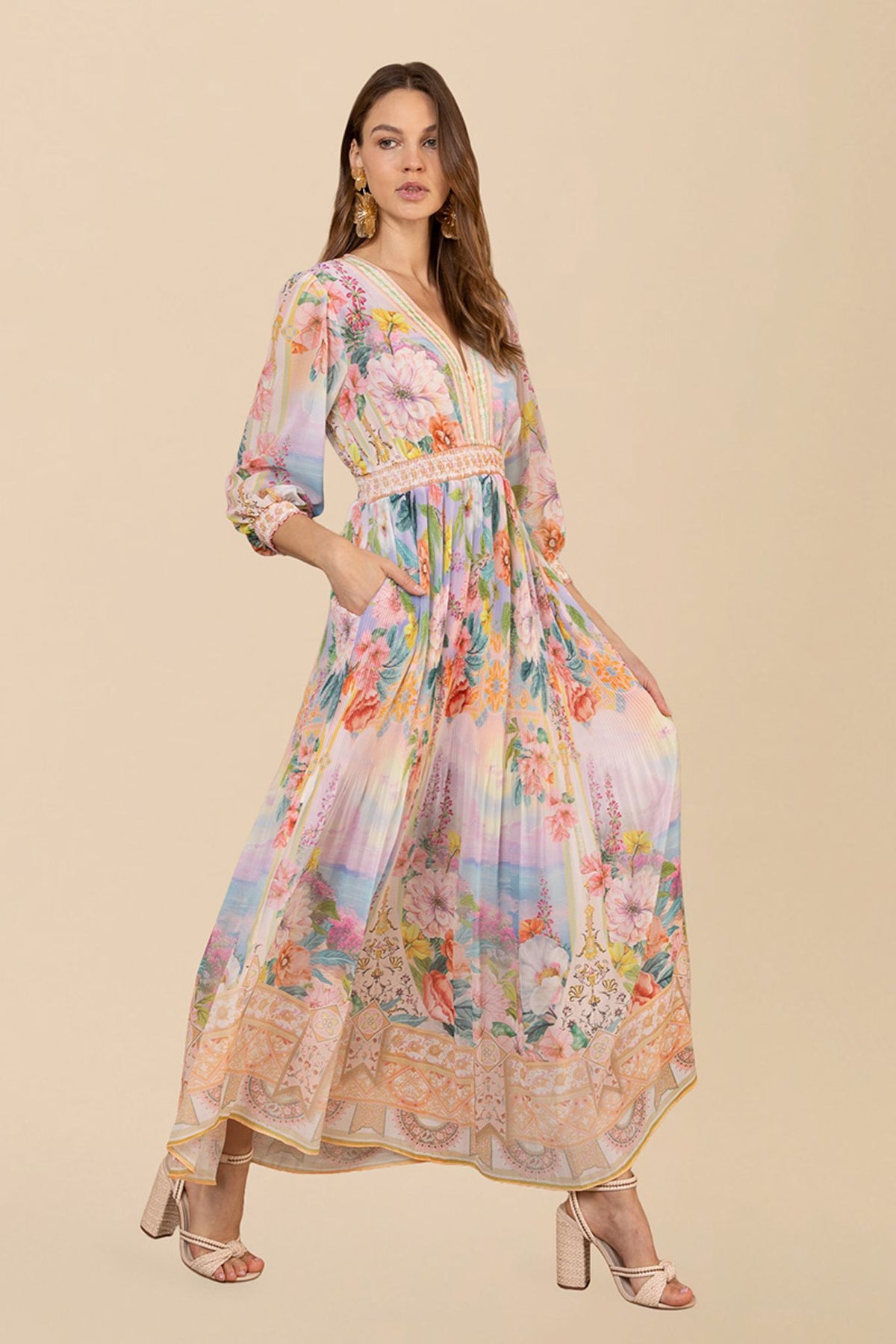 Den elegante Andie-kjolen i gullfarge er perfekt for spesielle anledninger. Med sitt voluminøse skjørt og smockede detaljer, gir den et sofistikert preg til ethvert antrekk.