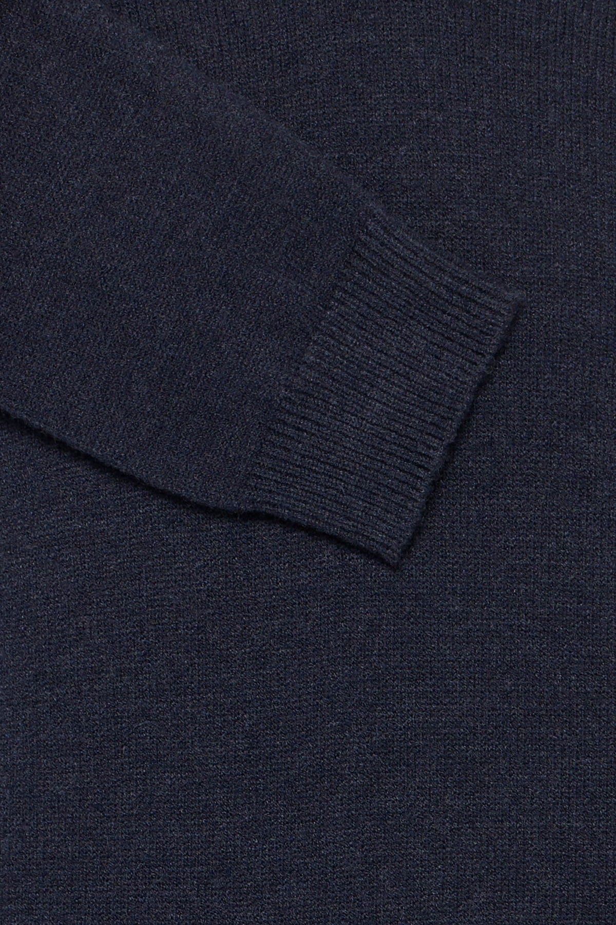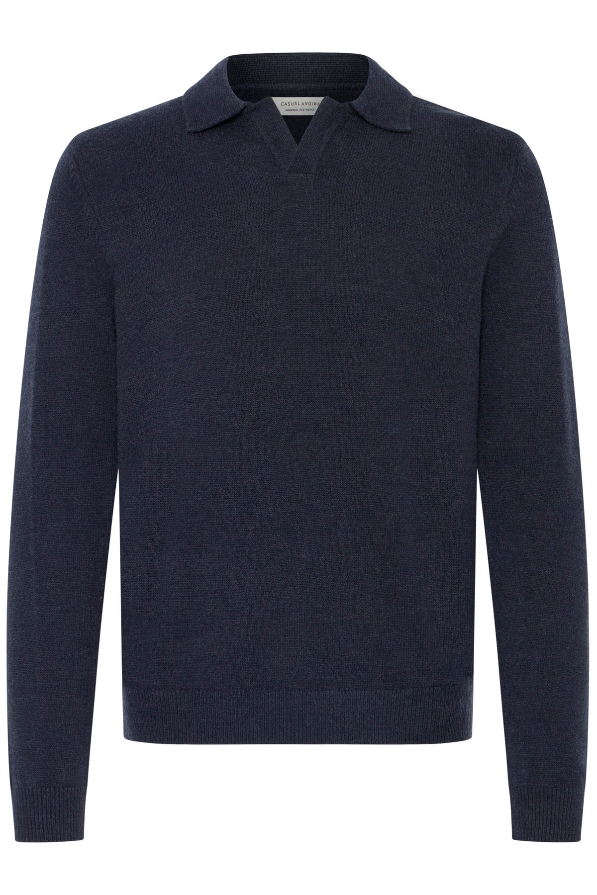 CFKARL polo knit er en stilren og komfortabel genser i mørk marine melange, perfekt for både hverdagsbruk og mer formelle anledninger. Den myke strikkede kvaliteten gir en behagelig passform og et tidløst utseende.