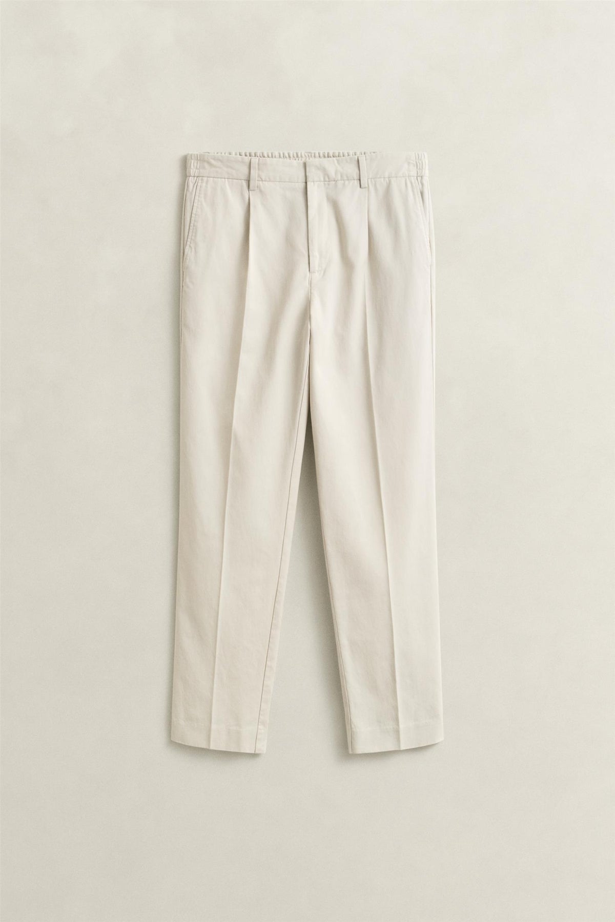 Disse buksene er ideelle for smart-casual antrekk, laget av en blanding av lyocell og økologisk bomull. De har en slank passform og er cropped ved leggen, med en mid-rise livhøyde og elastisk midje. Designet inkluderer skrå frontlommer, beltehemper, merkede corozo-knapper, samt en glidelås med krok, bar og knappelukking.