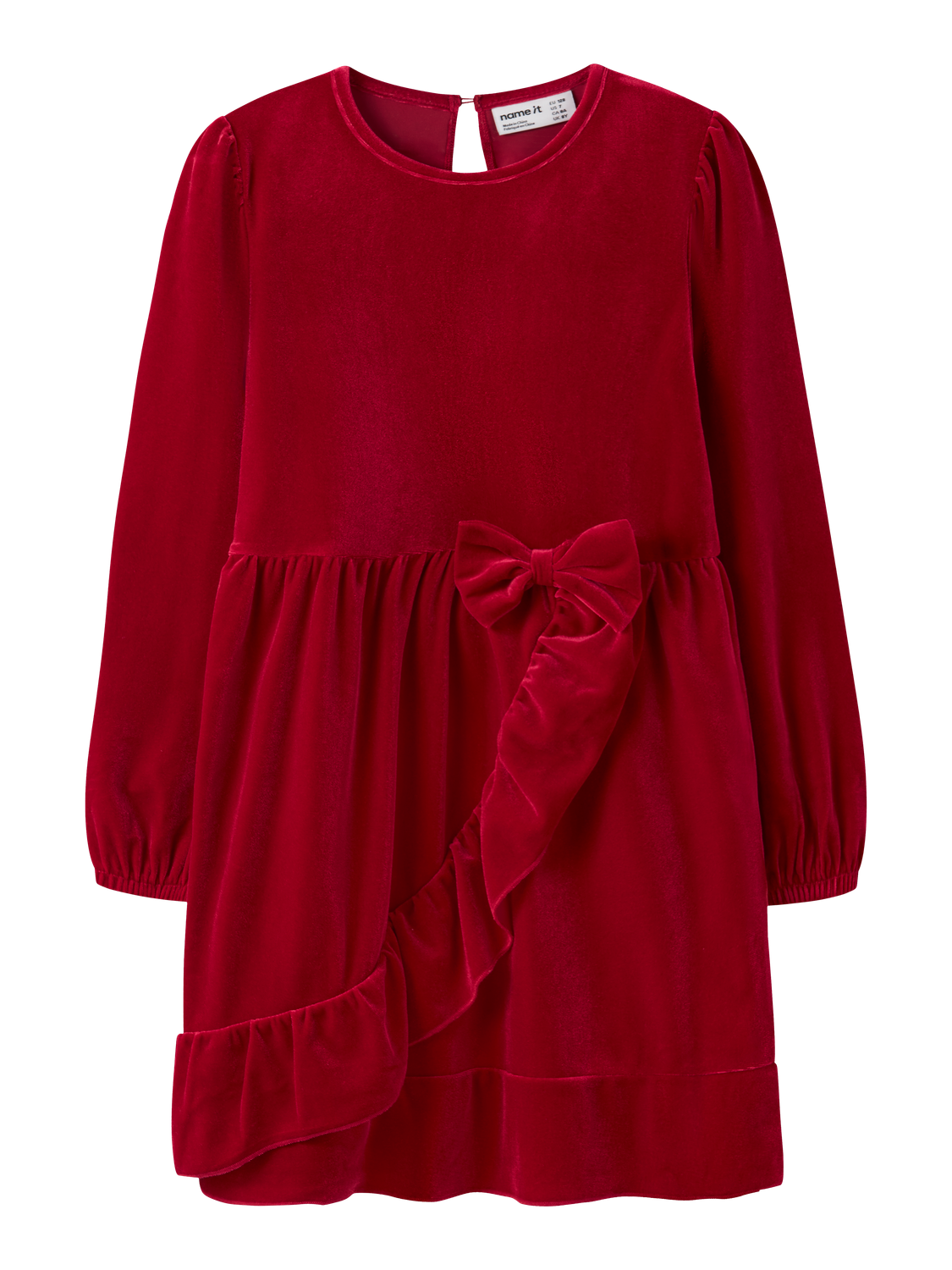 Gi barnet ditt en festlig stil med NKFREVELO VEL LS DRESS i en livlig jester rød farge. Denne klæren er laget av myk velour som gir en luksuriøs følelse, perfekt for å feire julen med stil.