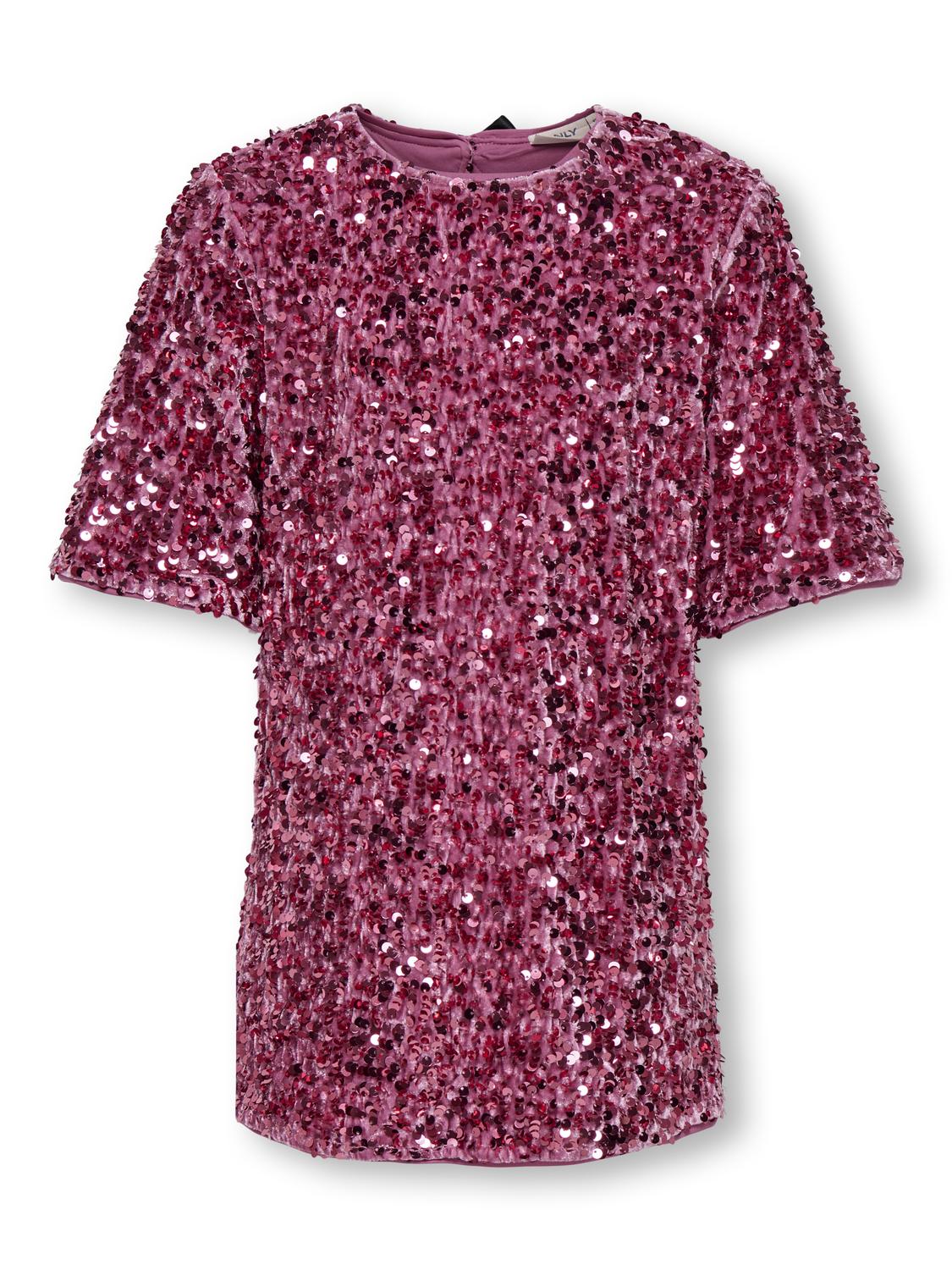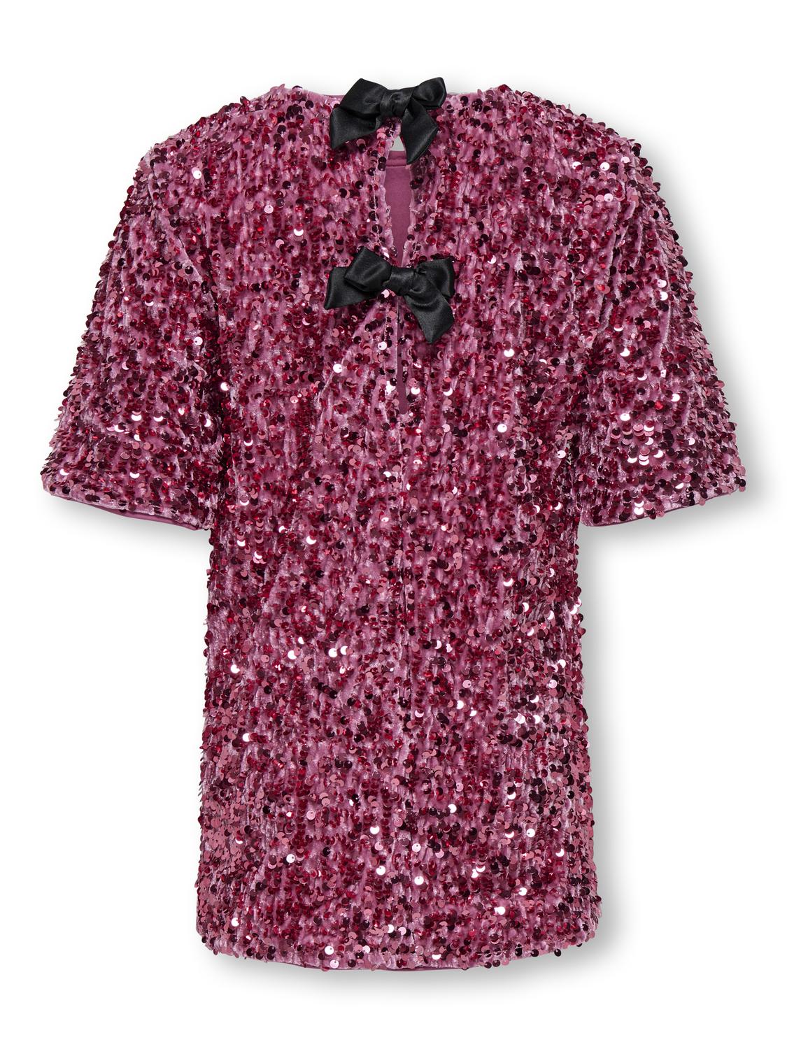 KMGCONFIDENCE SEQUINS DRESS JRS er en elegant kjole i en vakker rosévinfarge, perfekt for spesielle anledninger. Den glitrende designen gir et lekent preg, samtidig som den er komfortabel å ha på seg.