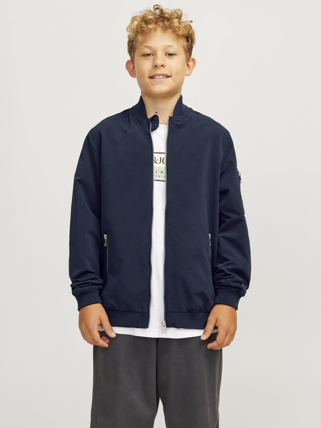 JJERUSH BOMBER NOOS JNR er en stilren bomberjakke i mørkeblå farge, perfekt for å tilføre et sporty preg til antrekket ditt. Den er laget av resirkulert polyester, noe som gjør den til et bærekraftig valg for miljøbevisste kunder. Jakken har en vannavvisende funksjon, noe som gjør den ideell for hverdagsbruk.