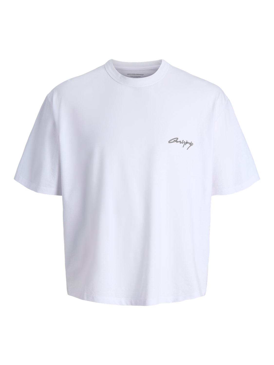 Enkel og stilren T-skjorte fra Jack & Jones Junior, perfekt for gutter i alderen 8-16 år. Denne T-skjorten kombinerer komfort med trendy design, og er laget av myke og pustende materialer. Med sitt avslappede snitt og kule trykk, er den ideell for hverdagsbruk.