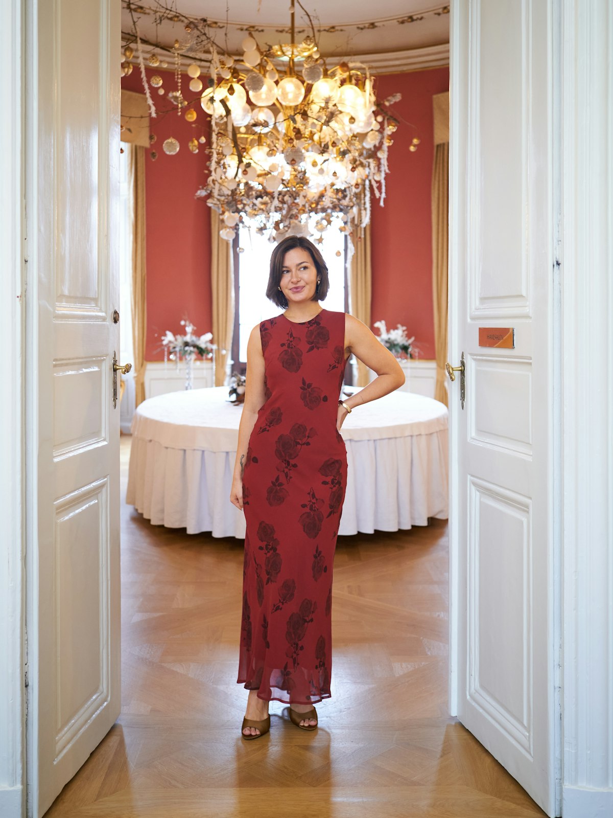 Kelsa Rose Dress er en elegant kjole i en dyp rød farge, perfekt for spesielle anledninger. Denne kjolen kombinerer stil og komfort, noe som gjør den til et flott valg for enhver garderobe.