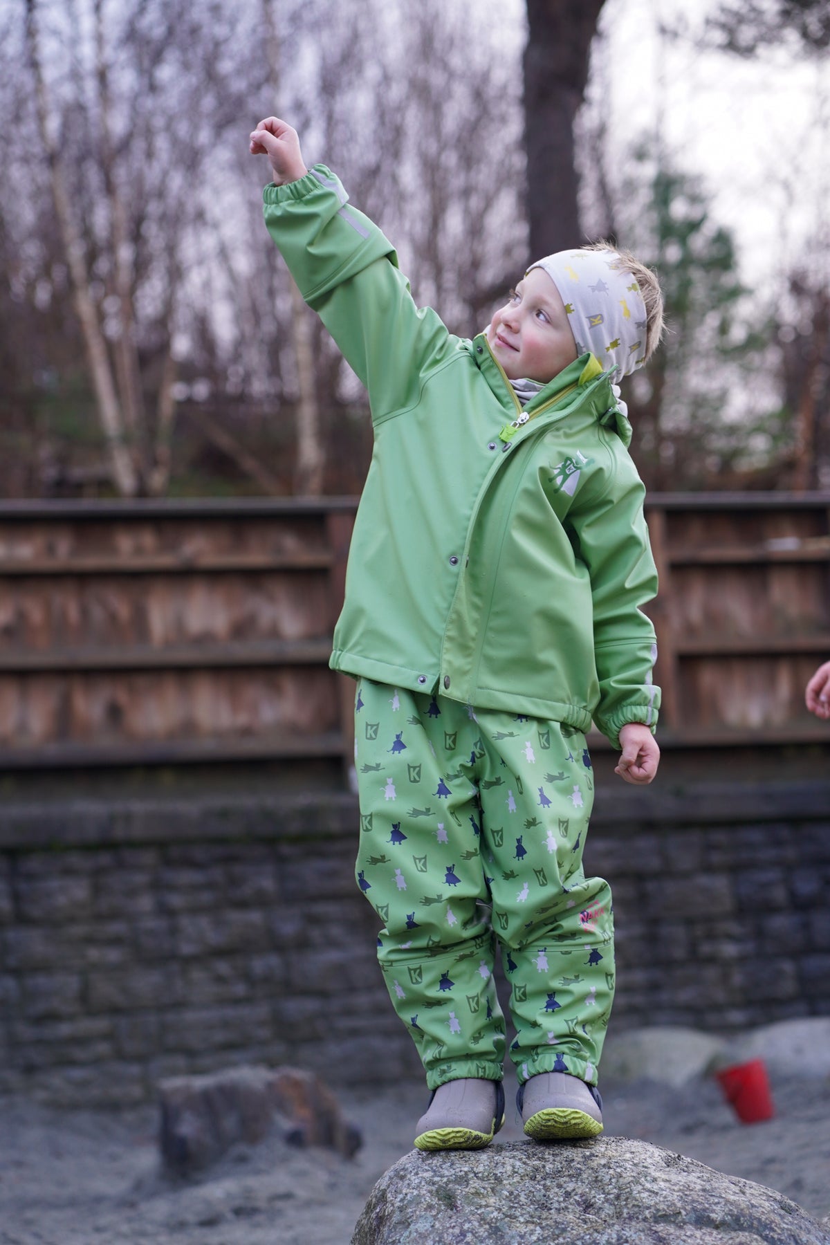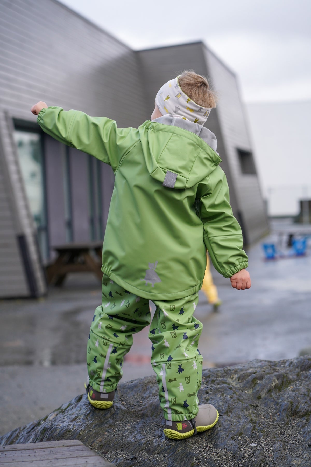 Jakke og bukse med seller i myk og slitesterk kvalitet (PU). Regntøyet har børstet innside som gjør at det er lunt og behagelig å ha på. Det er utstyrt med slitesterke fotstrikker, gode navnelapper, reflekser på ermer og bein, anti-oppsugingsstoff på ermer og bein, sveisede sømmer og sikker hette som er både avtagbar og regulerbar. Det er ekstremt slitesterkt og er helt vanntett. Vannsøyle på 30 000 mm.