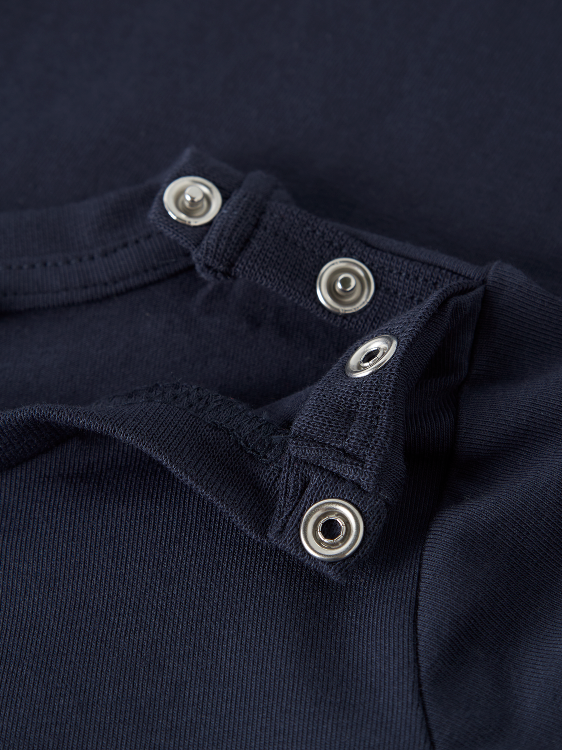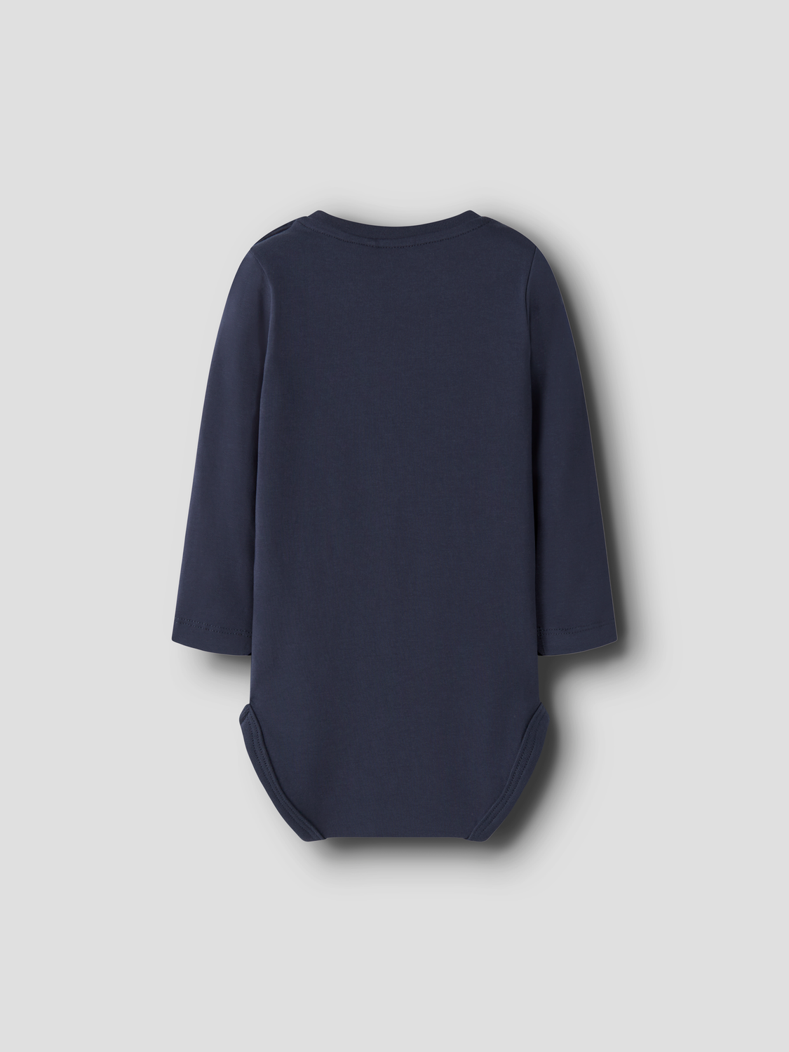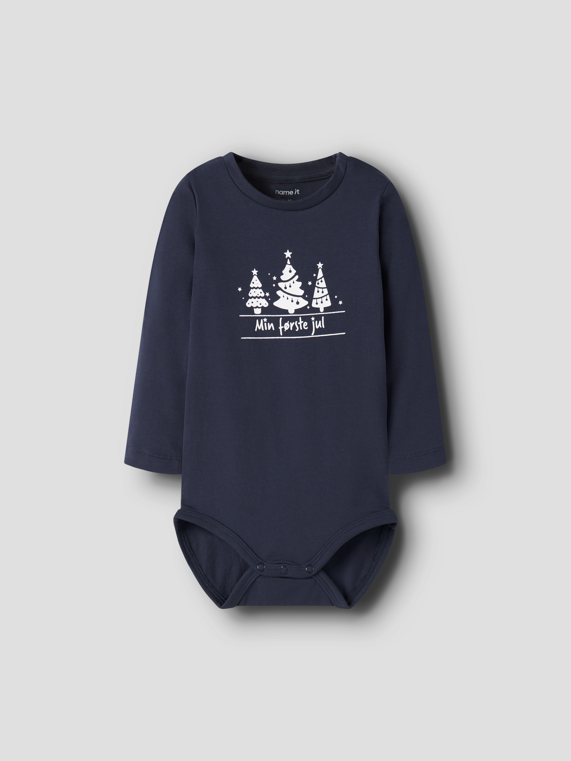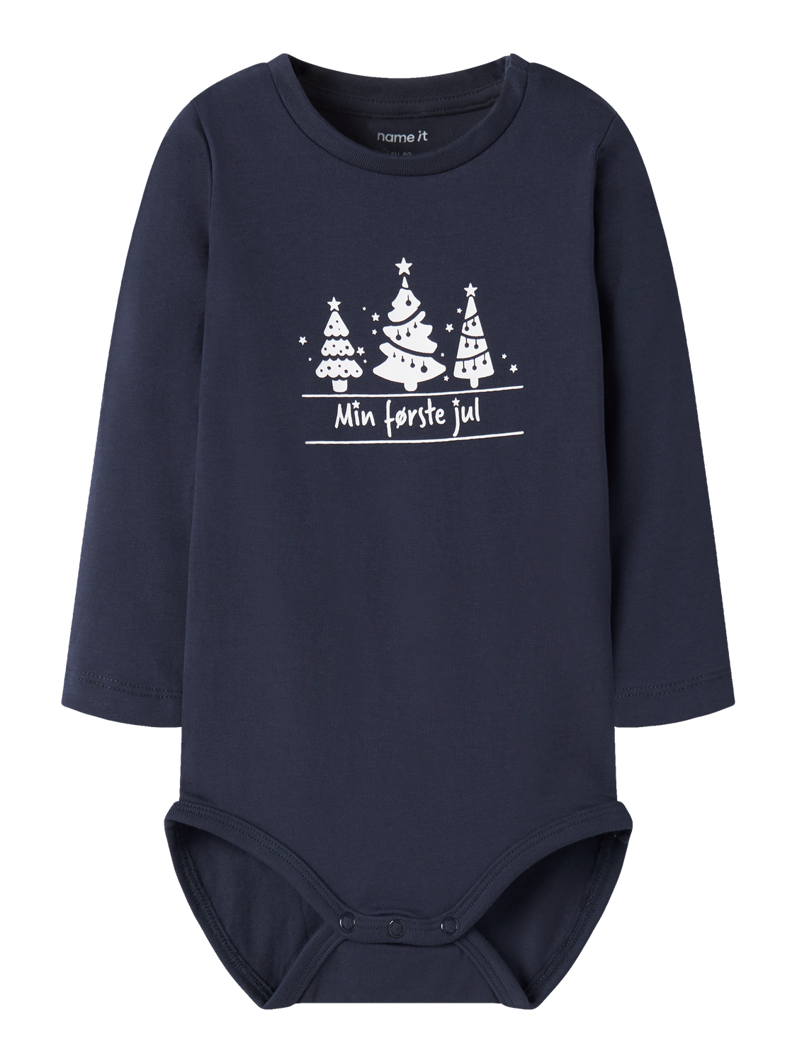 Feir julen med NBNRAJUL LS BODY, en komfortabel og stilfull body i mørkeblå farge. Laget av økologisk bomull, gir denne bodyen en myk følelse mot huden, perfekt for aktive småbarn. Den har lange ermer og en praktisk trykknapplukking, noe som gjør den enkel å ta av og på.