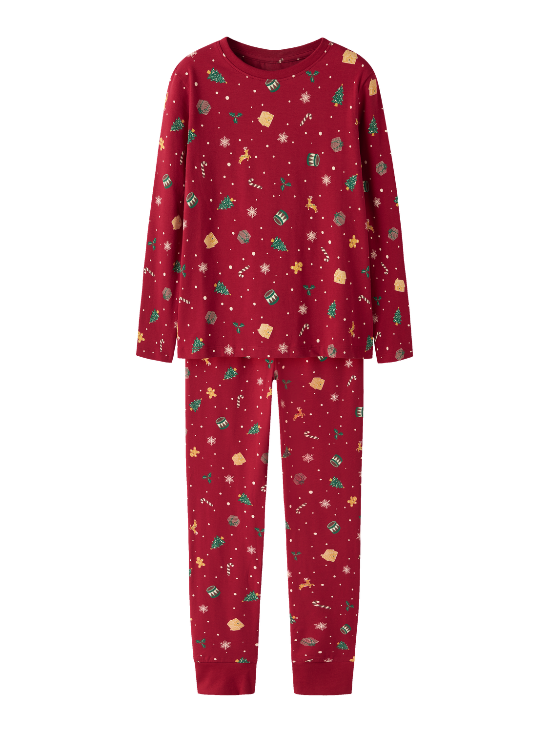 Gjør leggetiden morsommere for barnet ditt med NKNVISMAS LS NIGHTSET. Denne pyjamasen i jester red er laget av mykt og pustende jersey-stoff, perfekt for en god natts søvn.
