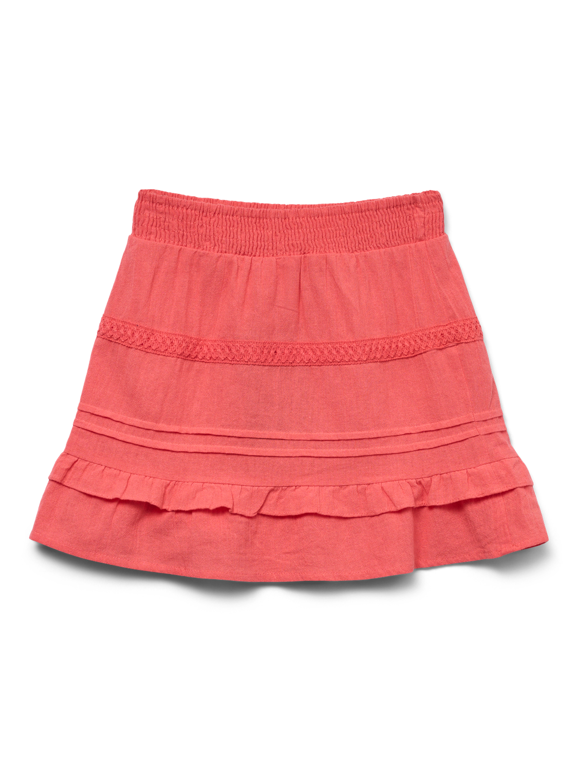 VMPRETTY kort skjørt fra Vero Moda Girl er et stilrent og komfortabelt valg for varme dager. Laget av 100% økologisk bomull, gir dette skjørtet både stil og bærekraft. Den delikate fargen Dubarry tilfører en feminin touch til antrekket.
