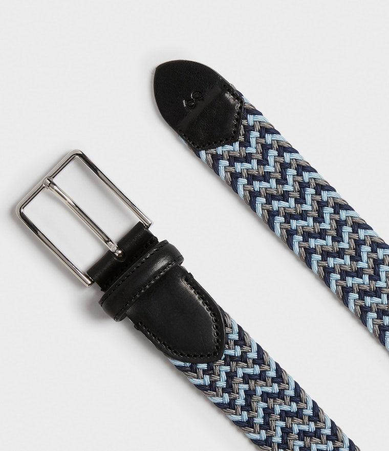 Tekstilbelte Mars fra Saddler. Et fint flettet belte i tekstil og vegetabilsk garvet fullnarvet skinn av topp kvalitet. Blandingen av tekstil og skinn gjør at beltet passer like bra til jeans eller chinos som til en mer elegant bukse. Spennen er i sølvfarget metall. Beltet er elastisk, så hvis du skal velge mellom to størrelser, anbefaler vi at du velger den minste.
