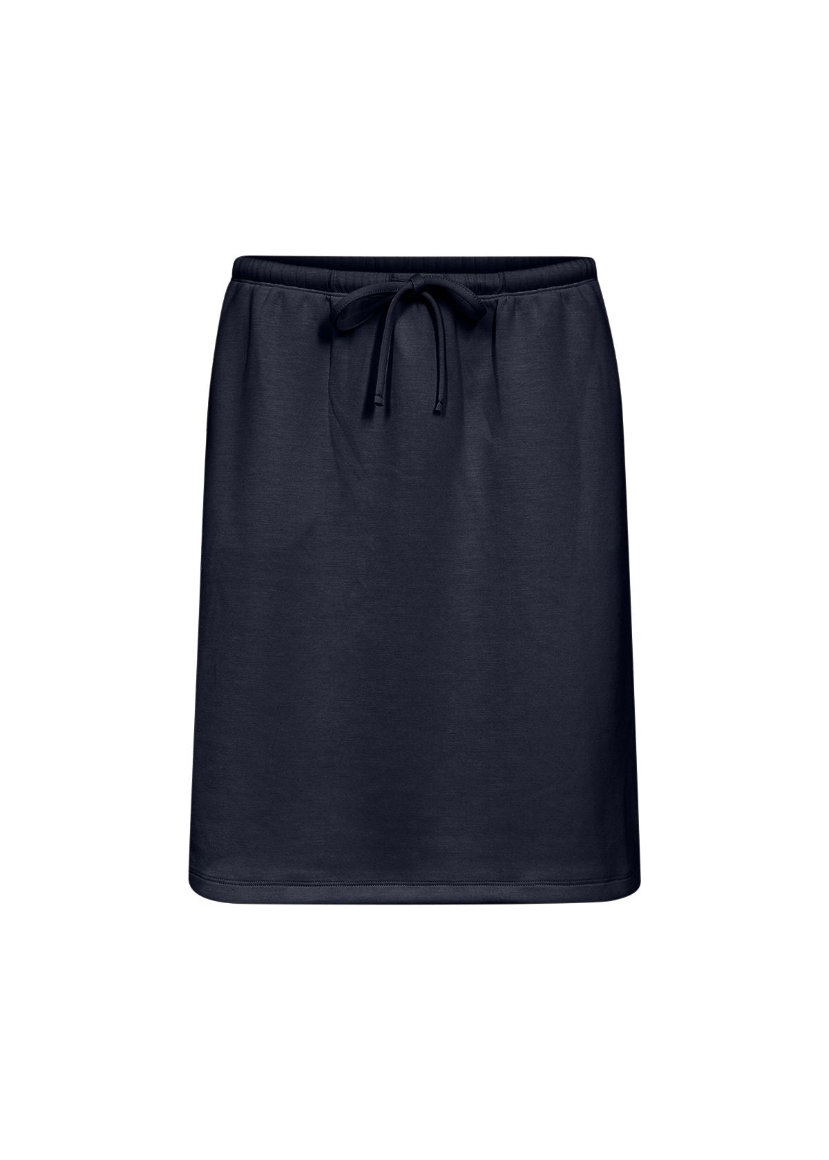 Knelang jersey-skjørt med ren silhuett, behagelig elastisk linning og justerbar snøring som gjør det enkelt å style både avslappet og mer pyntet.