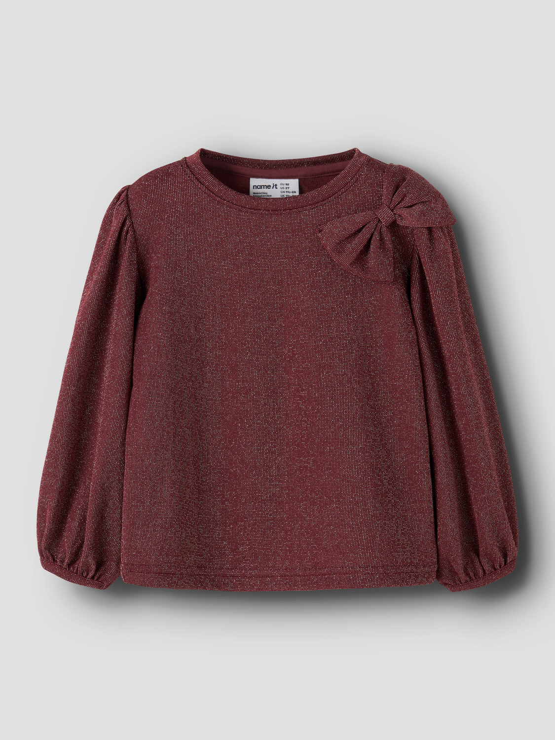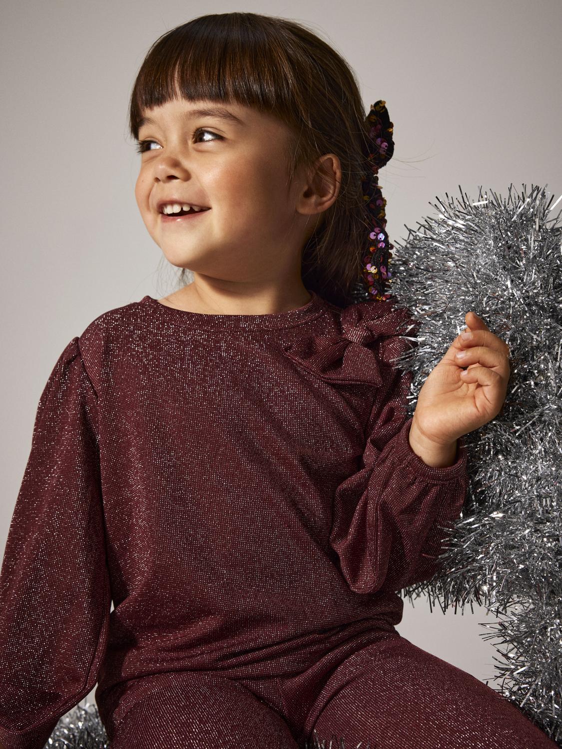 NMFROISIN LS TOP er en glamorøs topp som gir barnet ditt et stilig preg til festlige anledninger. Den skinnende glittereffekten og sløyfedetaljene gjør denne toppen til et perfekt valg for spesielle begivenheter.