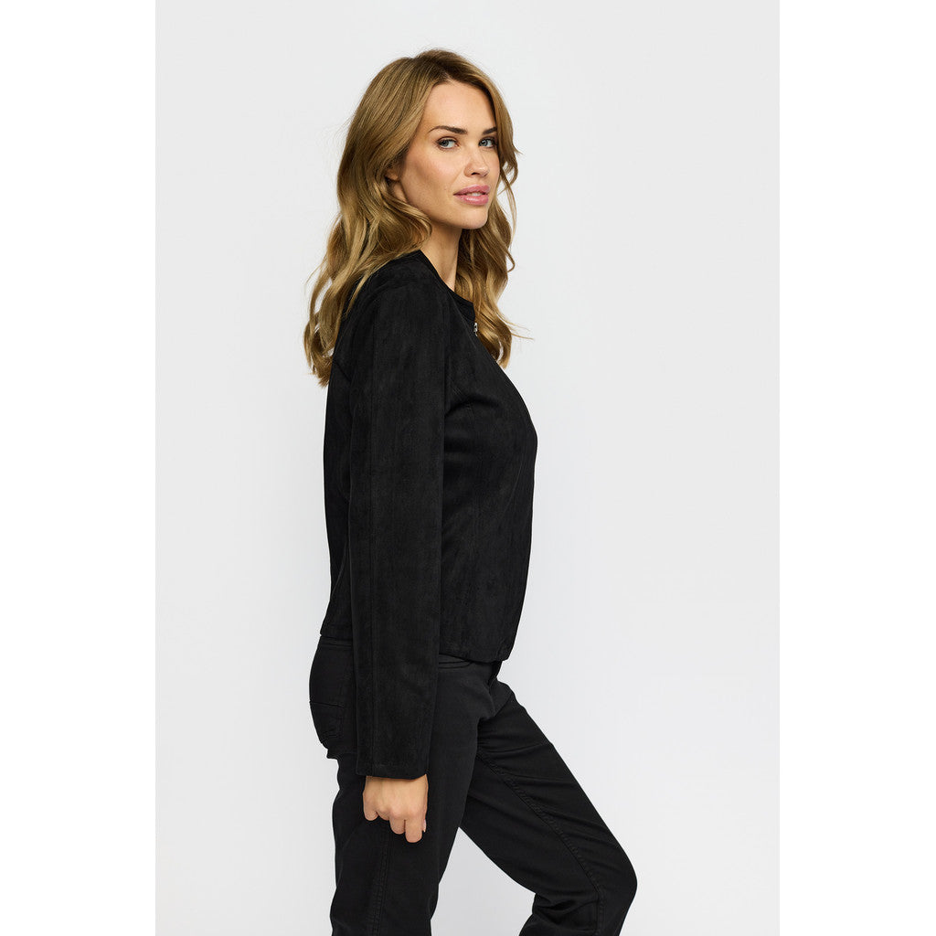 Jacket made in a soft suede-look fabric, featuring a front zipper closure and shaped seams for a flattering fit