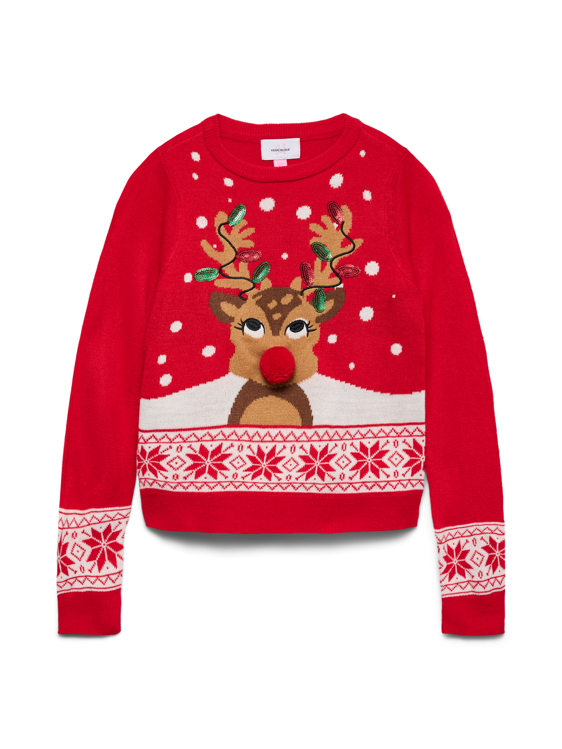 VMFROSTYDEER LS O-NEK PULL. XMAS GIRL er en stilfull og koselig genser perfekt for vinterens festligheter. Laget av 100% akryl, gir denne genseren både varme og komfort, samtidig som den har et lekent design som passer til sesongens feiringer.