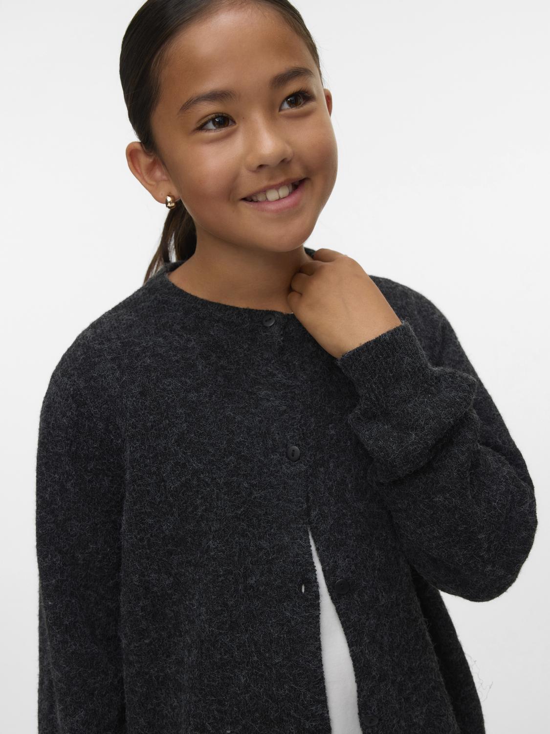 VMDOFFYSHINE LS O-NECK CARDIGAN GIRL er en stilren og moderne cardigan i sort, perfekt for å tilføre et elegant preg til antrekket ditt. Laget med en blanding av resirkulerte og vanlige materialer, gir denne cardiganen både komfort og stil.