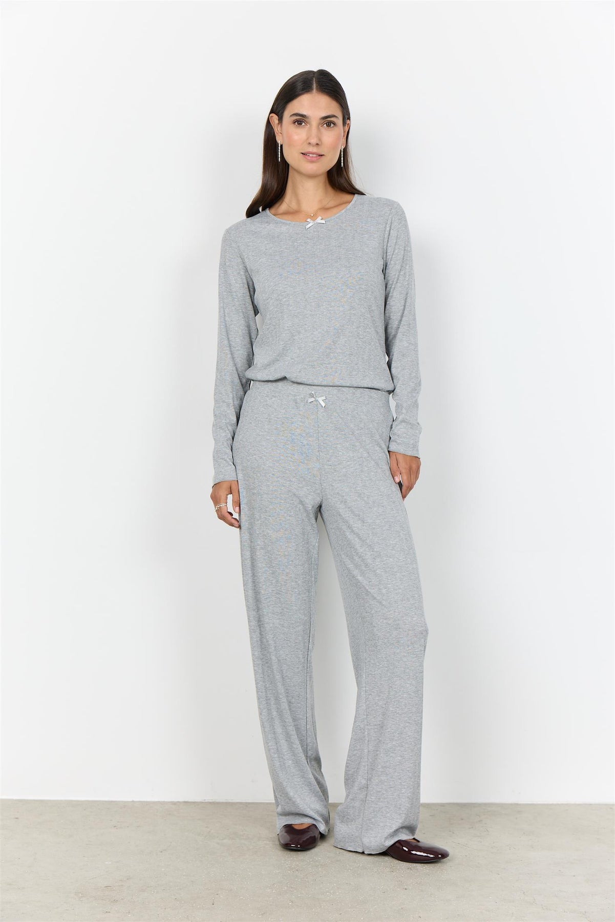 SC-ALEA SET 1 er et stilrent og moderne sett i en lys grå melangefarge, perfekt for en avslappet, men likevel trendy look. Dette settet er laget med fokus på bærekraft, og kombinerer komfort med stil.