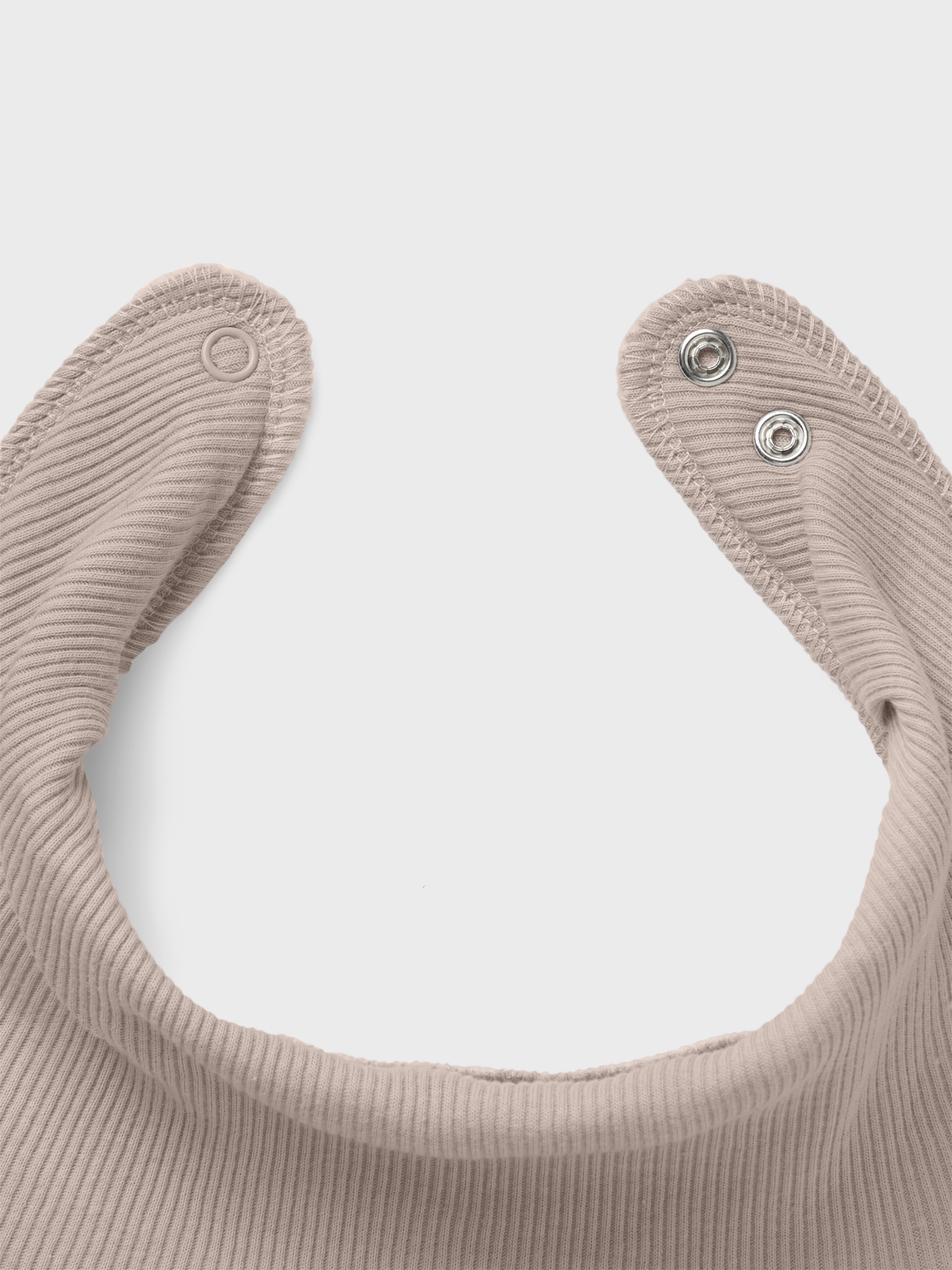 NBMYASIM RIB SCARF BIB er en praktisk og stilfull smekke som beskytter barnets klær samtidig som den tilfører et dekorativt element til antrekket. Laget av ribbestrikk med et vertikalt, stripete mønster, gir denne smekken en behagelig følelse og et tidløst utseende.